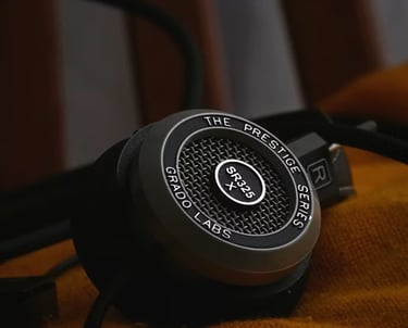 Start out with one of Grado's open-back headphones from the Prestige Series! There are various models; the highest-quality one is pictured here.