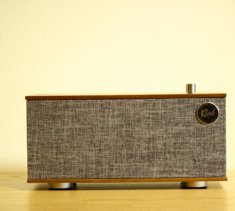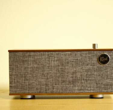 Sweet looking all-in-one tabletop 2.1 speaker that blends vintage design with modern features. Bluetooth and turntable capable.